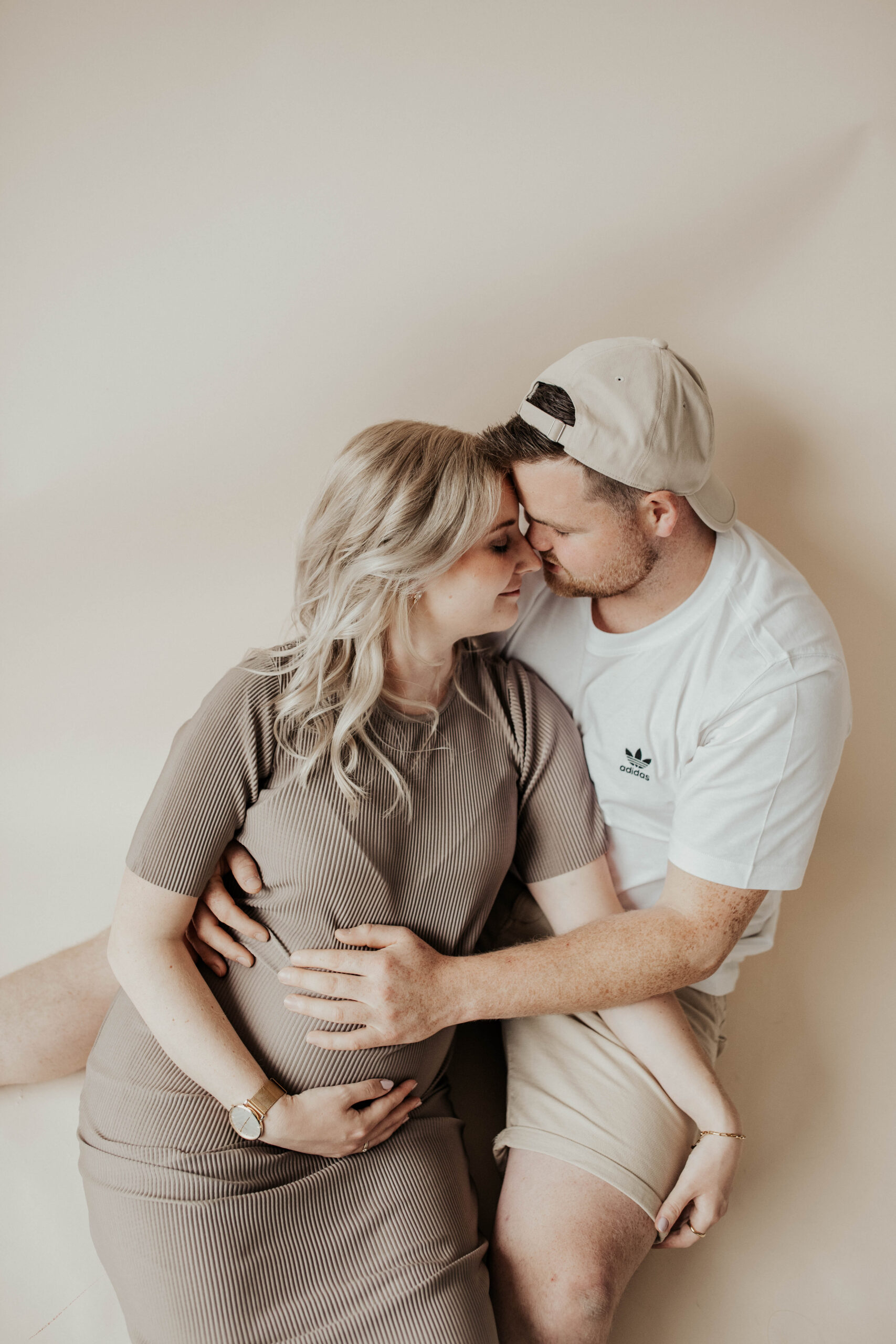 Am besten ziehst du am Tag des Shootings etwas weites an, um störende Abdrücke auf der Haut zu vermeiden und ziehst erst vor Ort dein finales Outfit an. Ein Kleidchen, eine weiße Bluse, ein enges Top. Alles, was den Bauch schön hervorhebt. Das wichtigste ist, dass ihr euch wohl fühlt! Ich empfehle Basics, ohne große Aufdrucke und Marken. Idealerweise schlichte Farben! Wenn ihr möchtet, könnt ihr natürlich auch kleine Accessoires, wie zum Beispiel kleine Babyschühchen oder ein Ultraschallbild mitbringen.